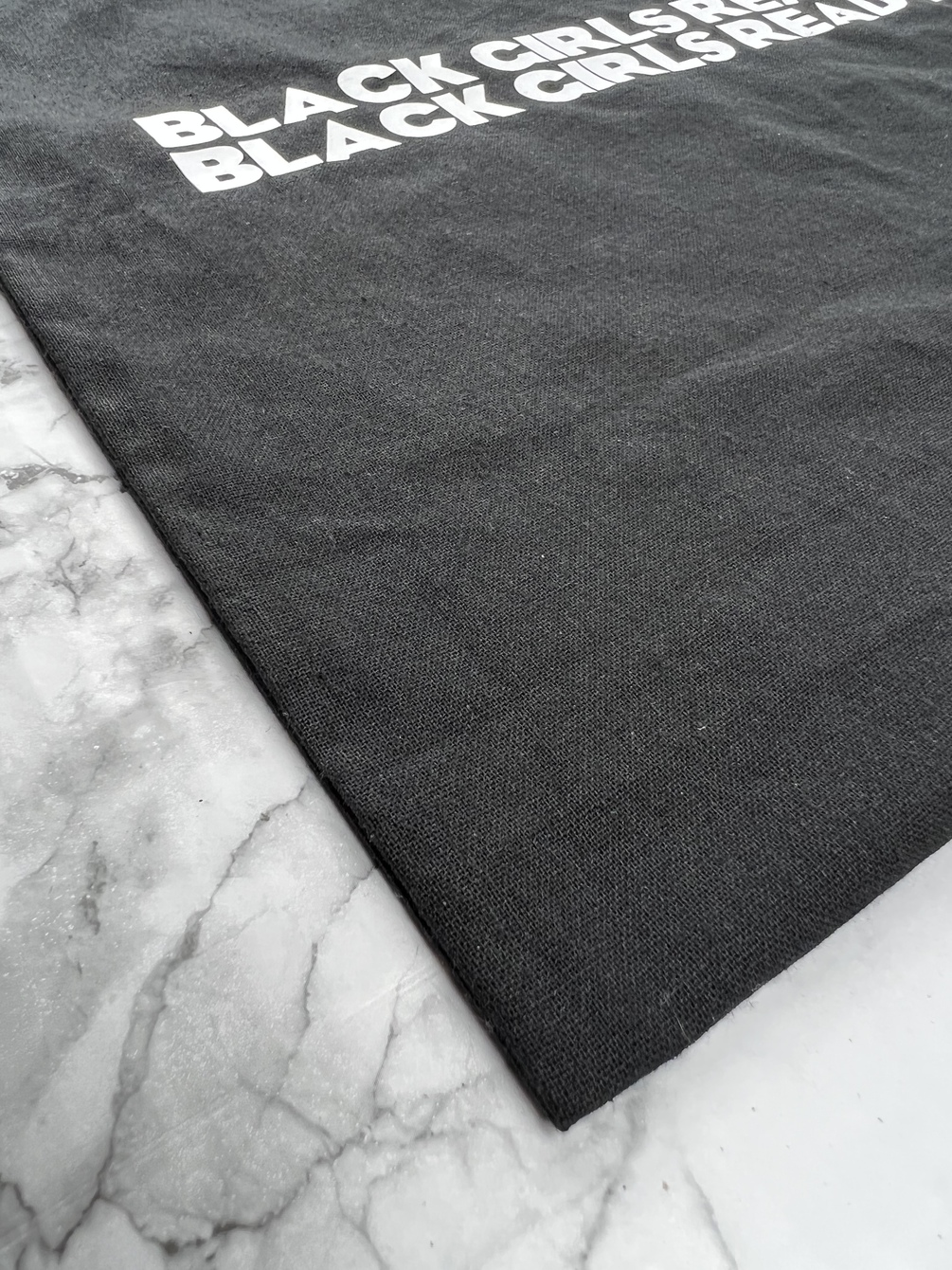 1 Black Cotton tote bag with "Black Girls Read Too" 2x
